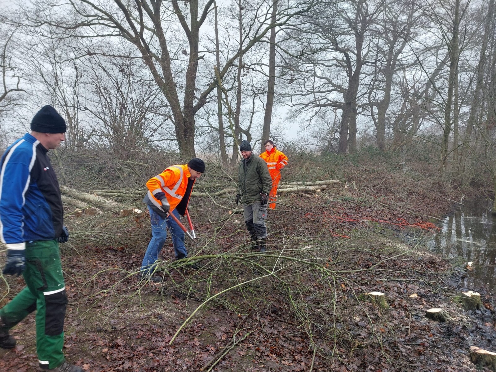 Nach dem Fischsterben im Jahr 2023 (Bericht und Bilder) hat sich der SFV Apen e.V. mit dem Landkreis Ammerland darauf verständigt, eine Windschneise zur Sauerstoffeinbringung am Teich am Untersten Weg einzurichten. Im letzten Jahr konnten wir leider aufgrund des Weihnachtshochwassers nicht an das Gewässer gelangen.