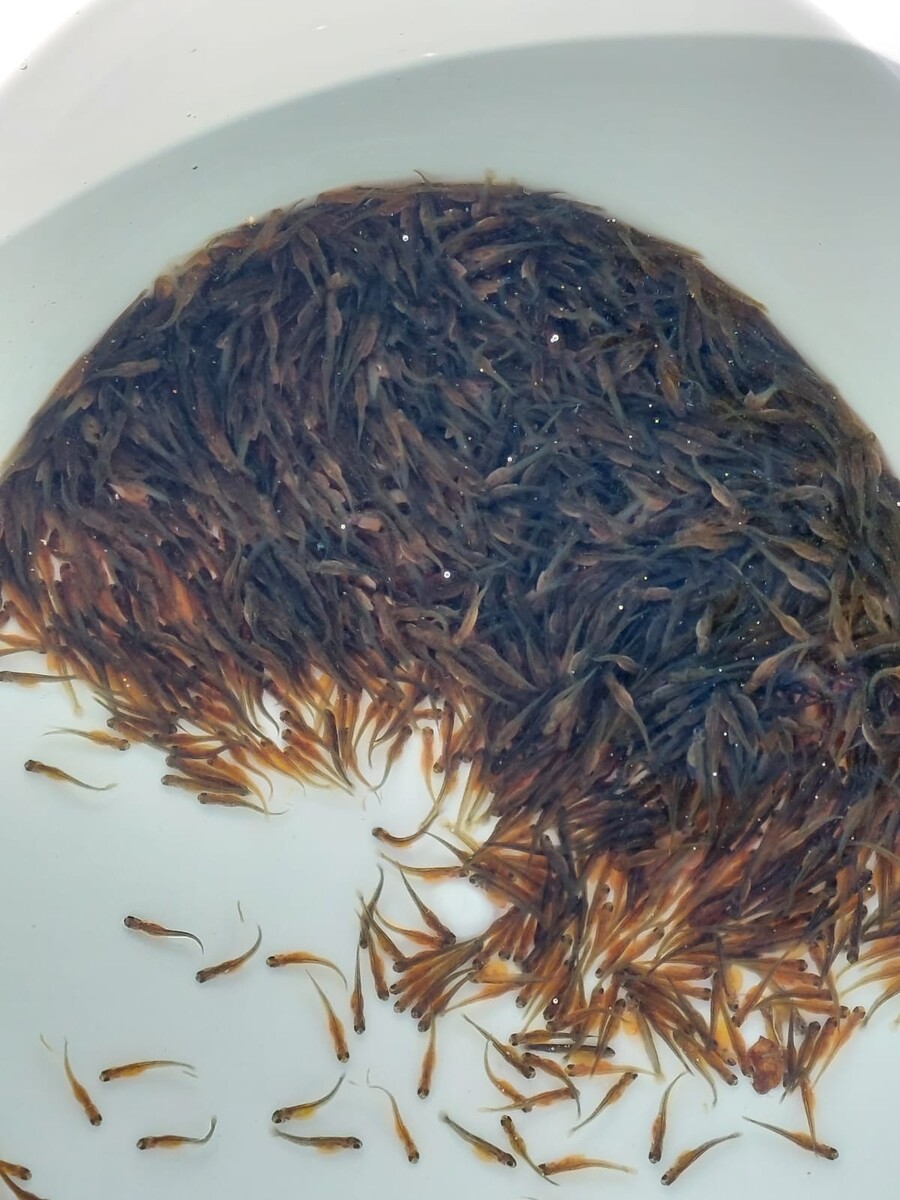 Im Oberlauf der Großen Süderbäke in den Garnholter Büschen in Westerstede wurden in der vergangenen Woche rund 5.000 Meerforellenbrütlinge eingesetzt. Die Brütlinge wurden von Thorge in aufwendiger ehrenamtlicher Arbeit in seinem eigenen kleinen Bruthaus gezüchtet. Die Eier wurden Ende November aufgelegt und mussten seitdem mehrfach täglich kontrolliert und gepflegt werden. Dabei war es notwendig, nicht entwickelte sowie abgestorbene Eier und Brütlinge täglich mit einer Pinzette sorgfältig zu entfernen. Die Eier stammen aus der Delme des ASV Harpstedt, einem der Vorreiter in der Wiederansiedlung der Meerforelle. Dort werden laichfähige Meerforellen mittels Elektrofischerei gefangen, abgestreift und der Laich anschließend an verschiedene Brutanlagen weitergegeben.